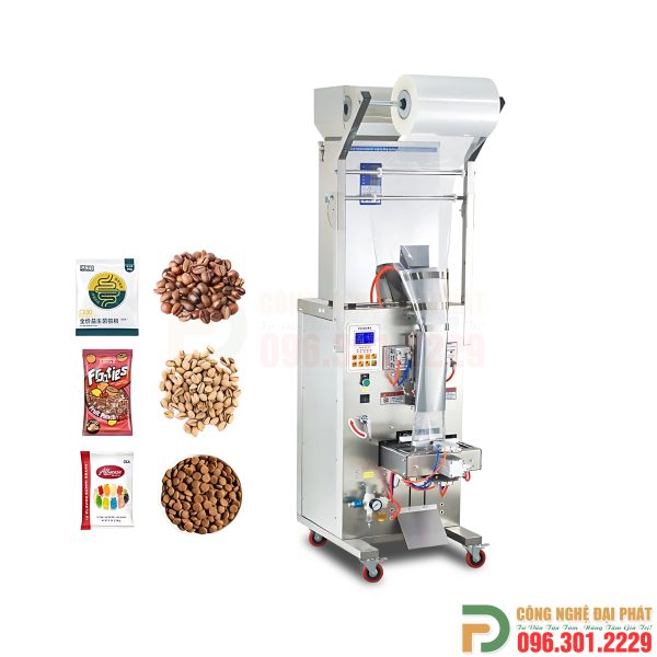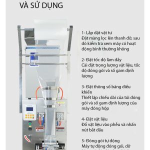 - Cấp liệu và định lượng: Sản phẩm được đưa vào phễu chứa và định lượng chính xác (bằng cân điện tử, cốc đong, hoặc vít tải tùy loại sản phẩm) vào túi/bao bì.