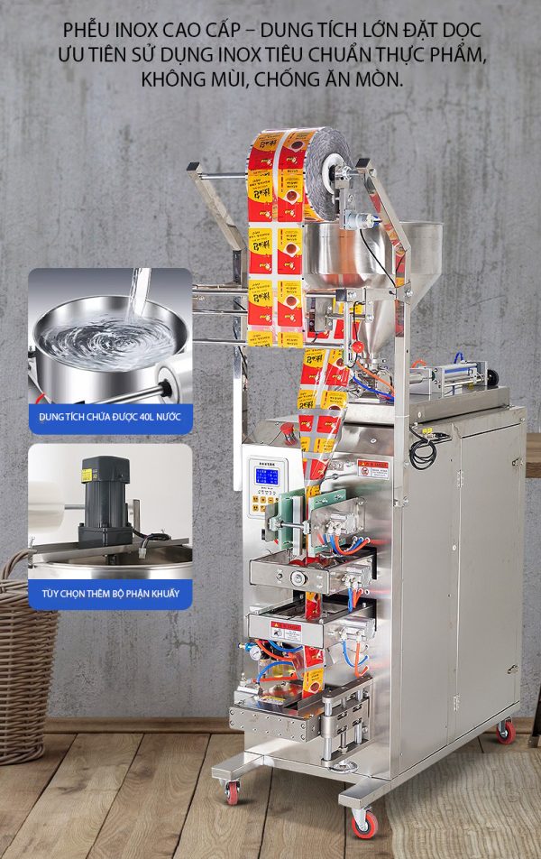 - Các bộ phận tùy chọn: Một số máy có thể được trang bị thêm bộ phận in date (ngày sản xuất, hạn sử dụng), bộ phận cắt định hình (cắt túi theo các hình dạng đặc biệt), hoặc hệ thống hút bụi (đối với sản phẩm dạng bột).