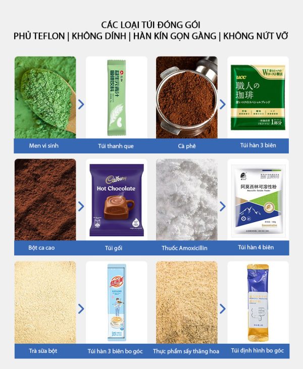- Tính linh hoạt: Có thể điều chỉnh để đóng gói nhiều loại bột khác nhau.