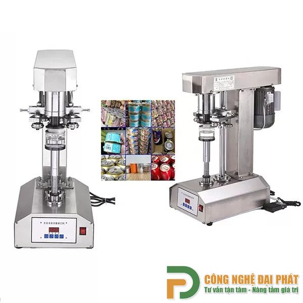 Đặc điểm: Hoạt động bán tự động, năng suất vừa phải (khoảng 10-20 lon/phút), dễ vận hành và có giá thành hợp lý hơn máy tự động.